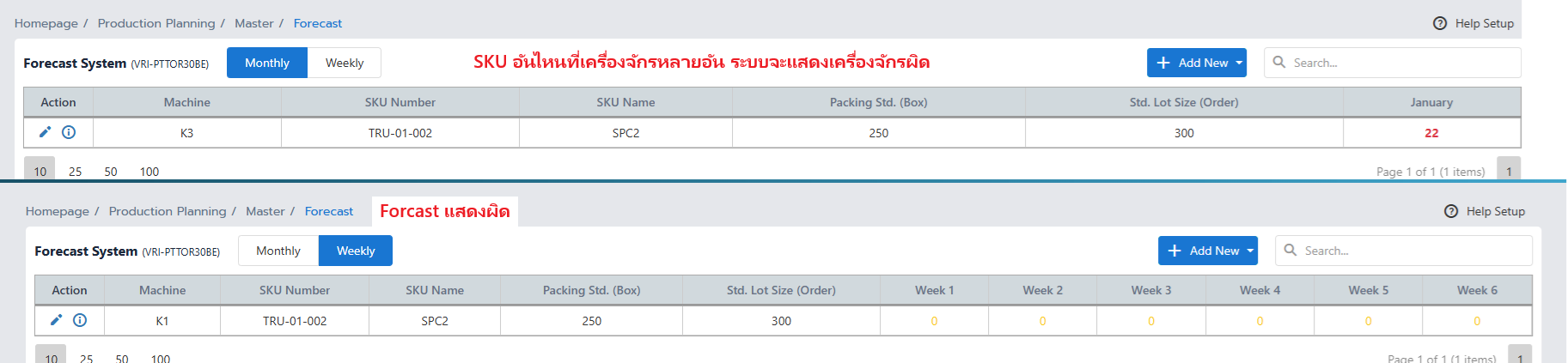 Forecast : แก้ไข UIและบัคเรื่องMatetrialนึงมีหลายเครื่องจักร